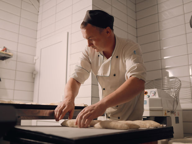 Работу пекарей всегда можно наблюдать через стеклянную витрину в торговом зале нашей пекарни.